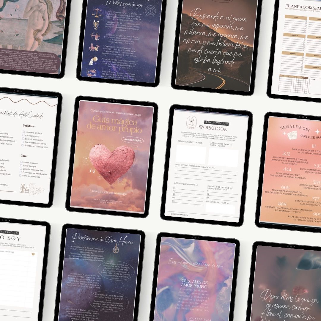La Guía Mágica de Amor Propio es una guía llena de intención, diseñada para ayudarte a reconectar contigo misma. Descubre la magia que vibra dentro de ti y desata tu potencial para amarte mejor y llenar tu vida de expansión y abundancia.